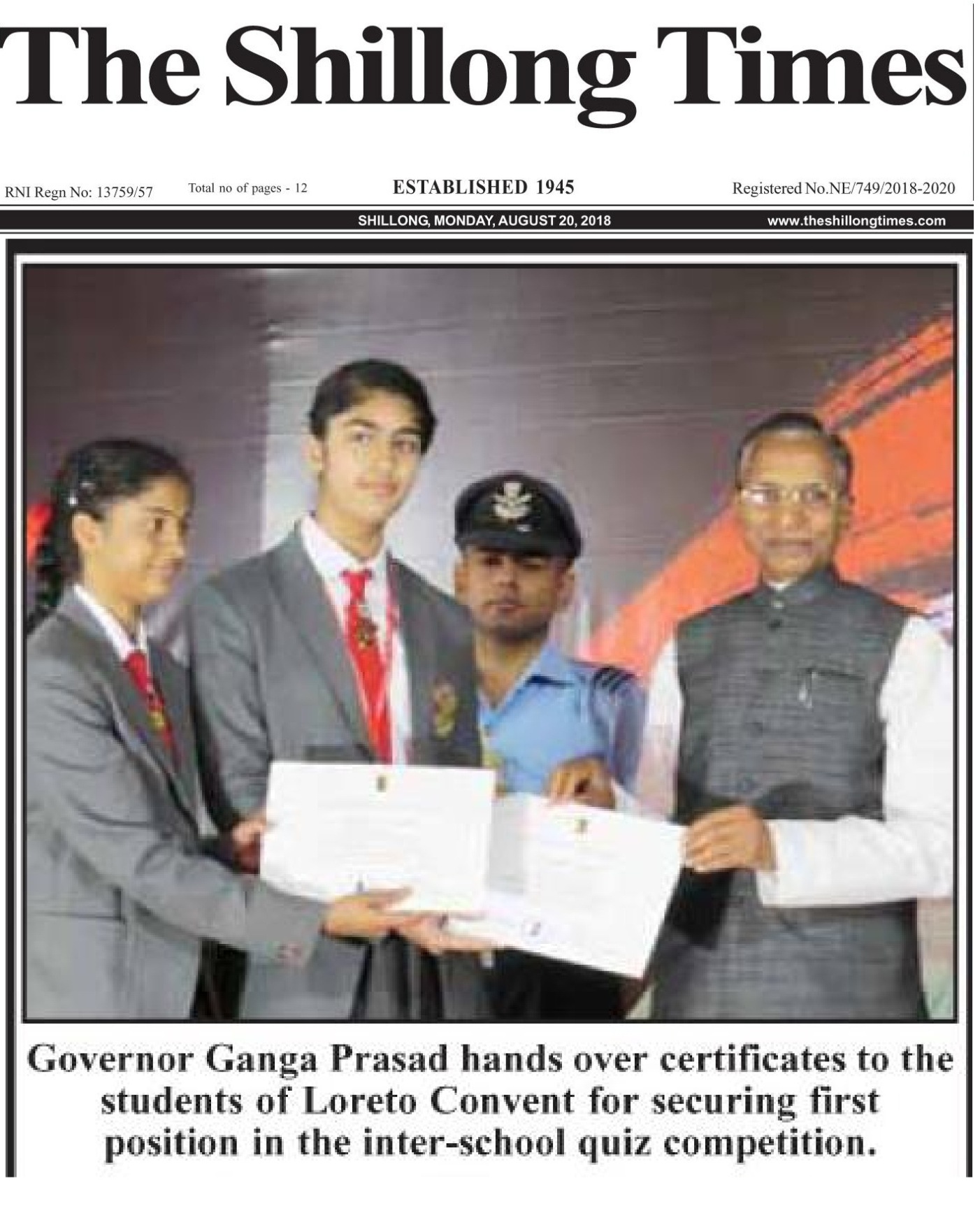 Description: Two students Mahek Agarwal and Zara Parvez Sharif of Class X had participated in the Inter School Quiz Competition on Independence Day, held at the Governor's House, and won the first Prize.