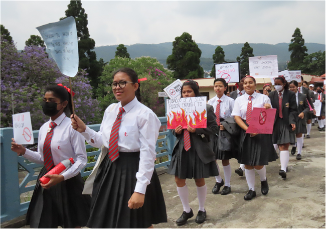 To mark the Anti - Tobacco Day,the students of classes IX - XII accompanied by the Principal, Sr Mable Rudum and teachers went on an 'Anti- Tobacco Rally' on the 17th of May 2023, following the route from School via Don Bosco Square, Fire Brigade, St.Edmunds Road and finally back to school.This rally was organized to create an awareness among the citizens of Shillong against the use of tobacco.