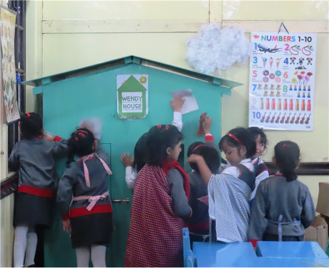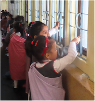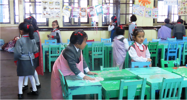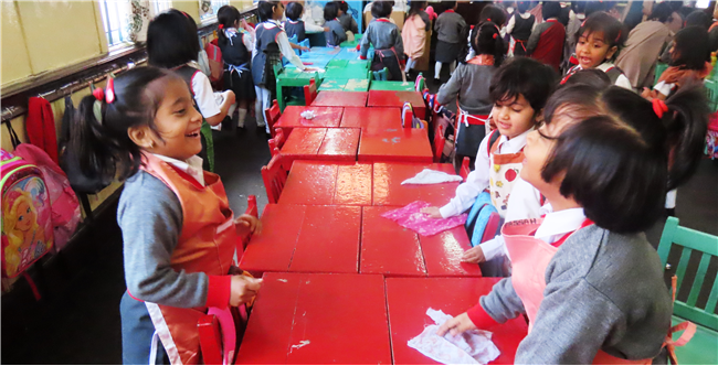 They were encouraged to keep their classrooms clean and also to become independent and self reliant by learning simple cleaning skills like sweeping and dusting.