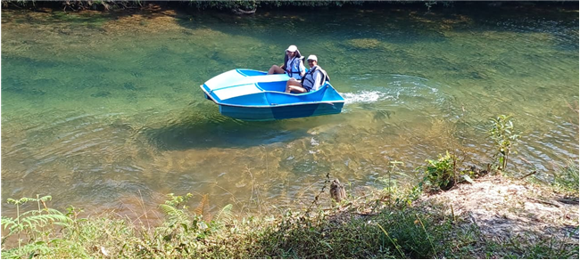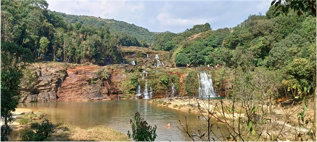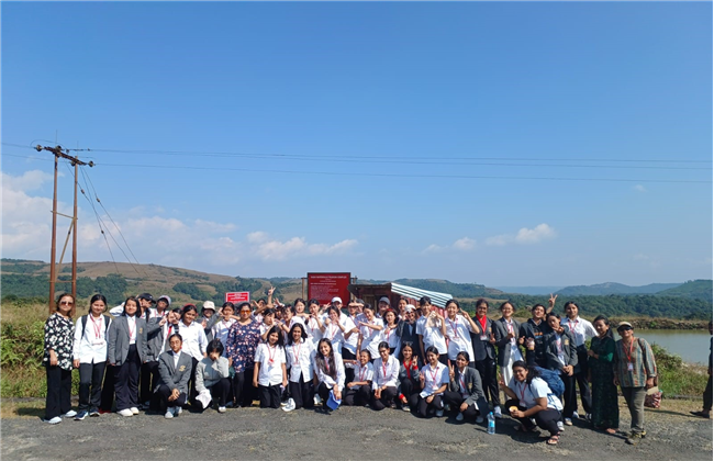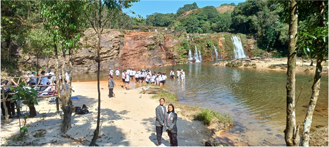The waterfall is about 65 kms from Shillong and features diverse flora and fauna. Students observed geological formations and the cascading water of the Wah Rashi Kshaid.